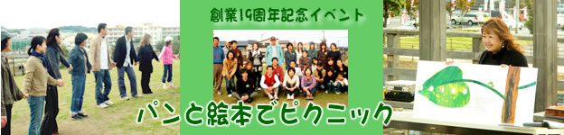 創業19周年記念イベントは、2007年11月4日(日)近くの永犬丸中央公園の芝生の上で、幼き頃を思い出して、絵本の読み聞かせをメインにワークショップやフォークダンスを行いました。