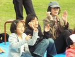 秋の青空の下参加者全員ピクニック気分で、軽食を食べながらイベントを楽しみました。 |