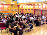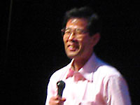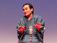 | 笑いに包まれたホール内 | 「木々のささやき」の配送をお手伝いいただいている半熟卵の会様 |
